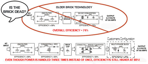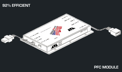 - VERY HIGH EFFICIENCY, GREATER THAN 80% TOTAL. INCLUDES EMI FILTER, POWER FACTOR CORRECTION MODULE AND DC TO DC CONVERTER.