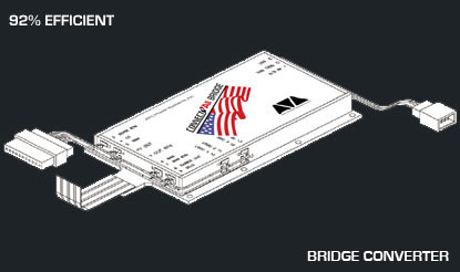 NOTE: THE KEY TO THE IS THE VERY EFFICIENT 28V OUT OR 12V OUT 500 WATT FULL BRIDGE CONVERTER WHICH YIELDS EFFICIENCIES OF GREATER THAN 92% WHILE MOST OTHERS OFFER EFFICIENCIES BETWEEN 83% - 88%. ALSO, THIS MODULE HAS A UNIQUE CURRENT LIMITING SCHEME WHICH ALLOWS STARTING OF NEGATIVE INPUT IMPEDANCE DC TO DC CONVERTERS AT FULL POWER WITH STARTING INPUT VOLTAGES AS LOW AS 15 VOLTS. THIS IS A KEY FEATURE NECESSARY FOR BUSS CONVERTERS.